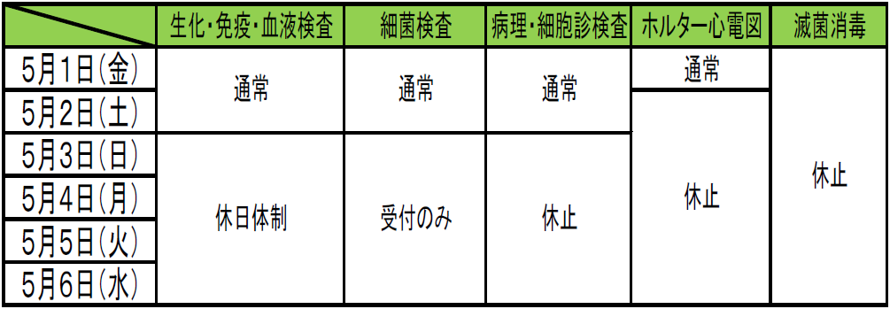 ゴールデンウィーク期間中の検査体制のご案内