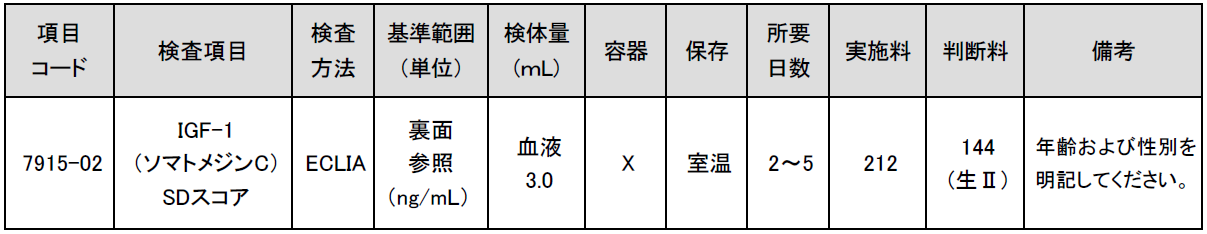 IGF-1は、年齢や性別によって変動がみられるため、IGF-1値に加え年齢および性別による基準値をもとに算出したIGF-1SDスコアによる評価が行われています。