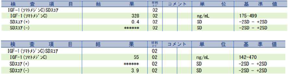 ●IGF-1 (ソマトメジンC) SDスコアの報告内容について