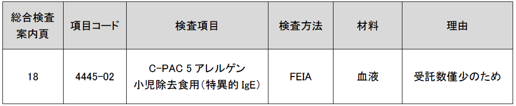 C-PAC 5アレルゲン 小児除去食用(特異的IgE) 受託中止のお知らせ